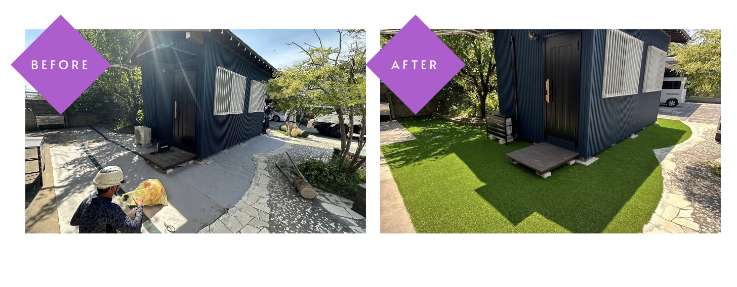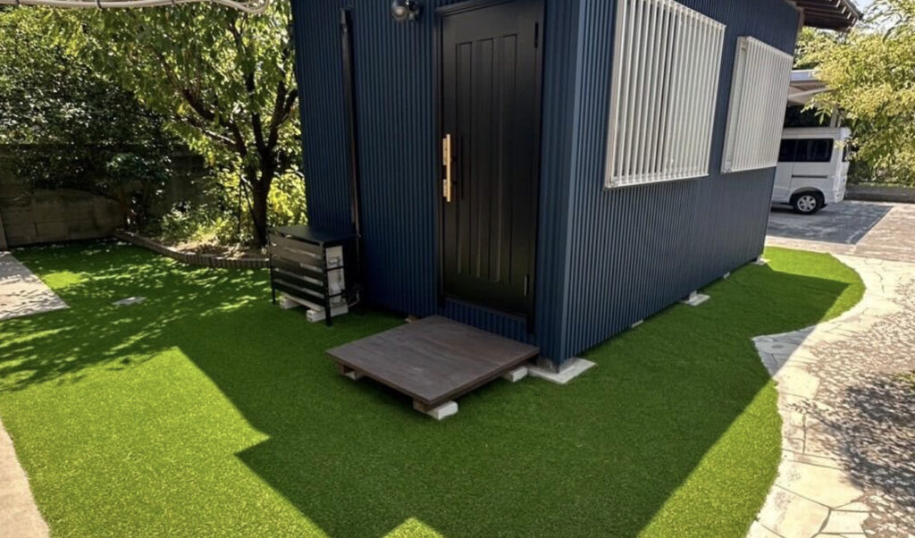 丁寧に整地し、最高級の防草シートと人工芝を組み合わせることで、「裸足で歩ける最高の遊び場」へと生まれ変わりました。