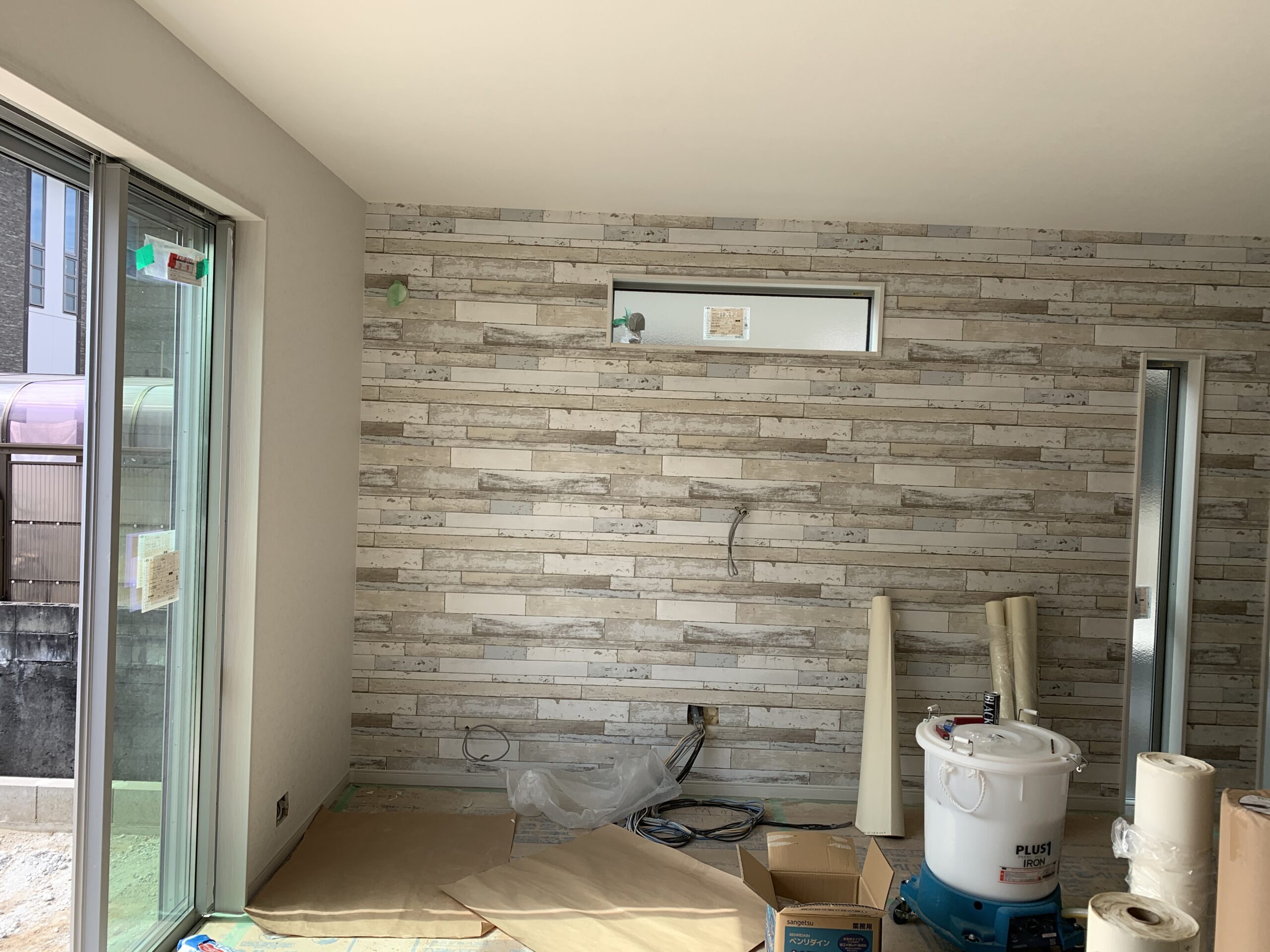 まずは実際に張ってみると、サンプルの色よりも薄く見えることがあるということです。注意事項にも記載がありますが、紙一枚のサンプルで見るのと壁一面に張ったイメージとでは若干の色合いなどが異なります