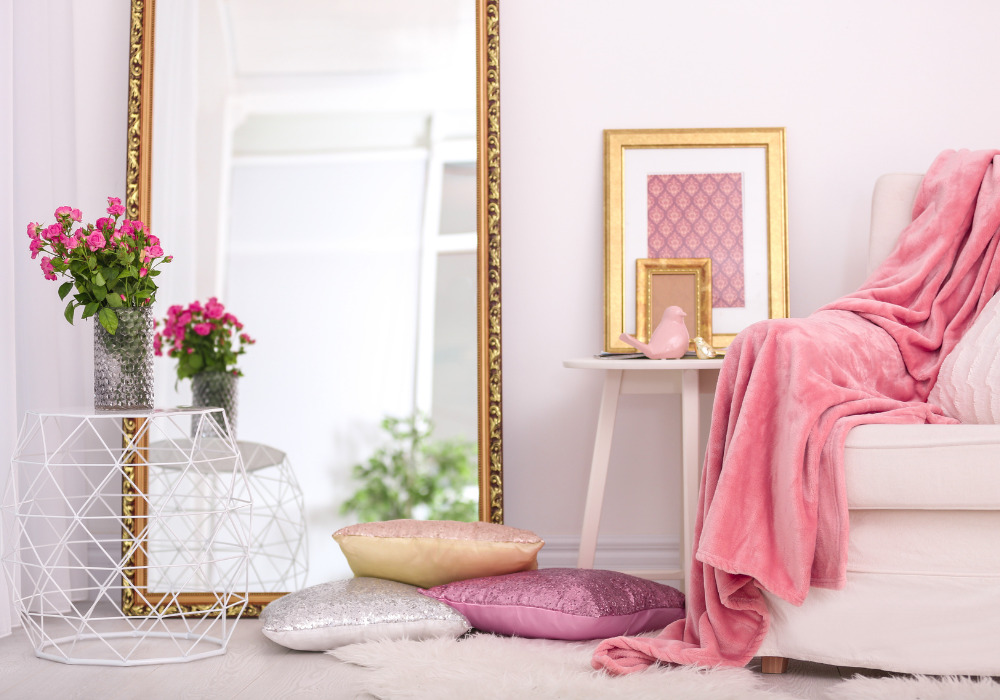 壁に鏡を取り付けると、壁の後ろに空間があるような錯覚を作り出し部屋が広くなったように見えます。