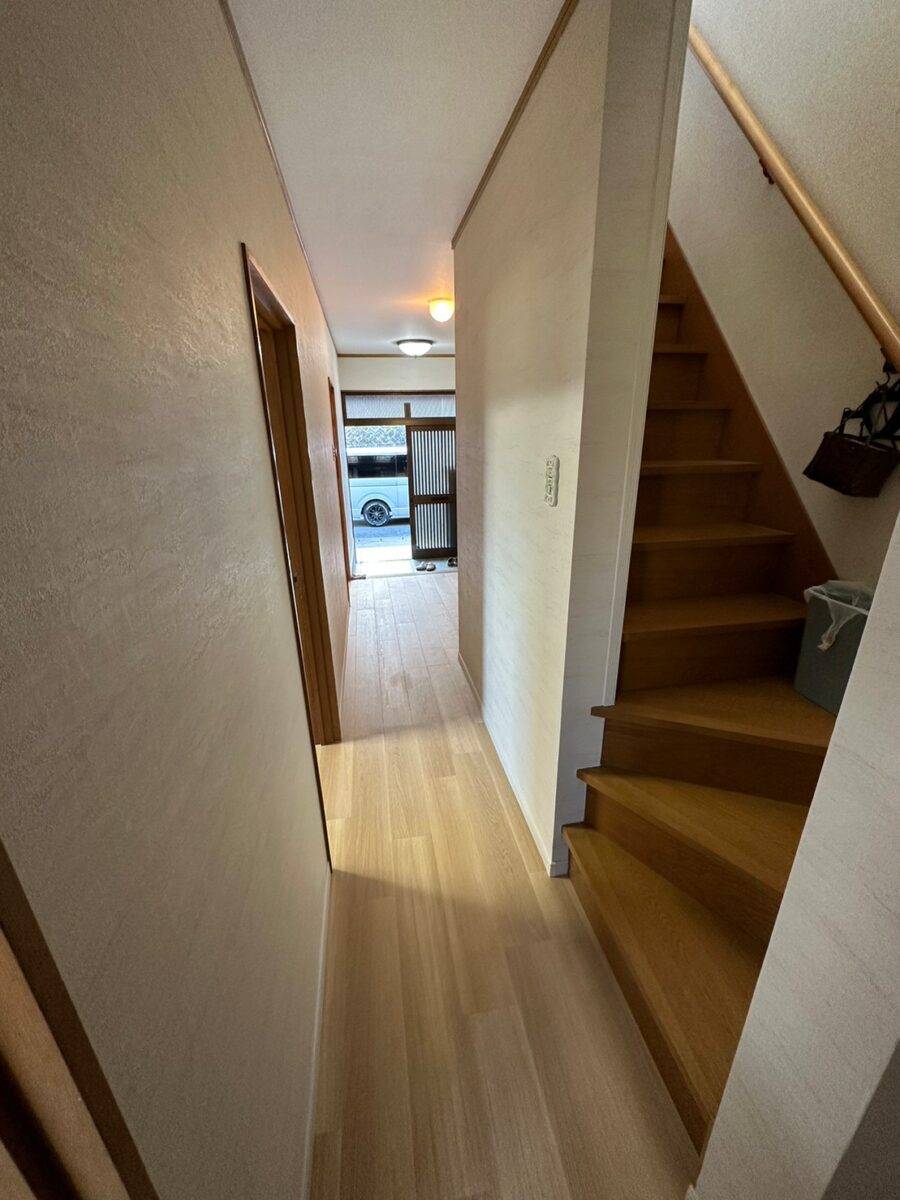 ついでに階段下収納のまわりのフロアとクロスも貼り替え、雰囲気をがらりと変えました。