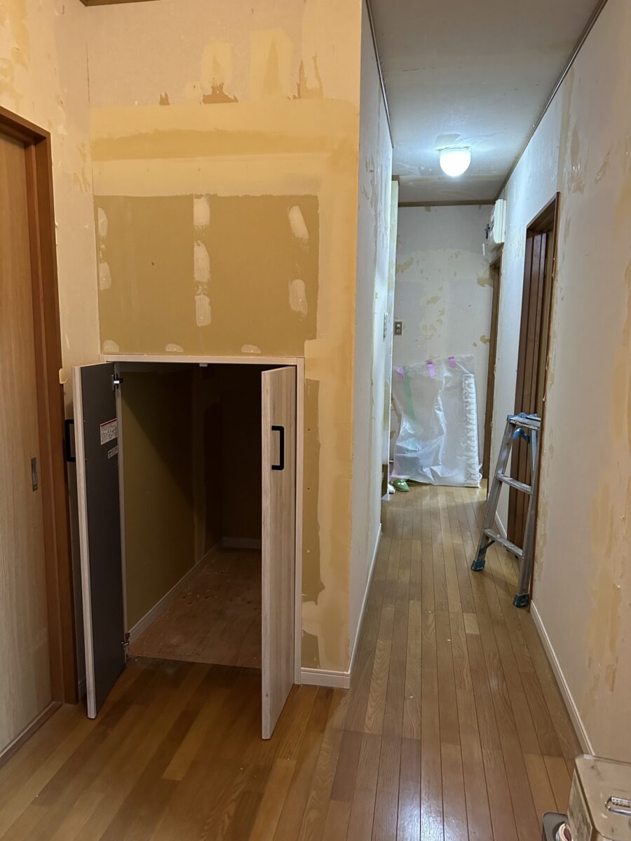 そして玄関からは正面になってしまいますが、正面の壁の部分に扉を取付するように工事を進めさせていただきました。