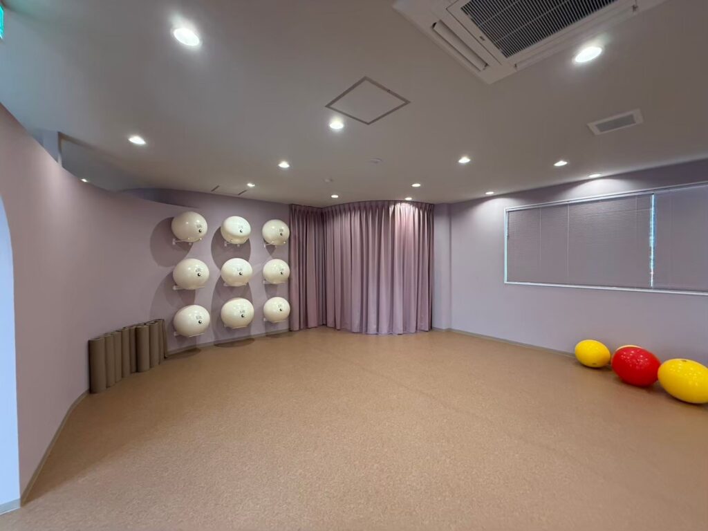 今回手掛けたのは、バランスボールスタジオの内装工事です。明るく清潔感のある空間づくりを軸に、鏡や照明の配置まで細部にこだわり、レッスンに集中できる環境が完成しました。