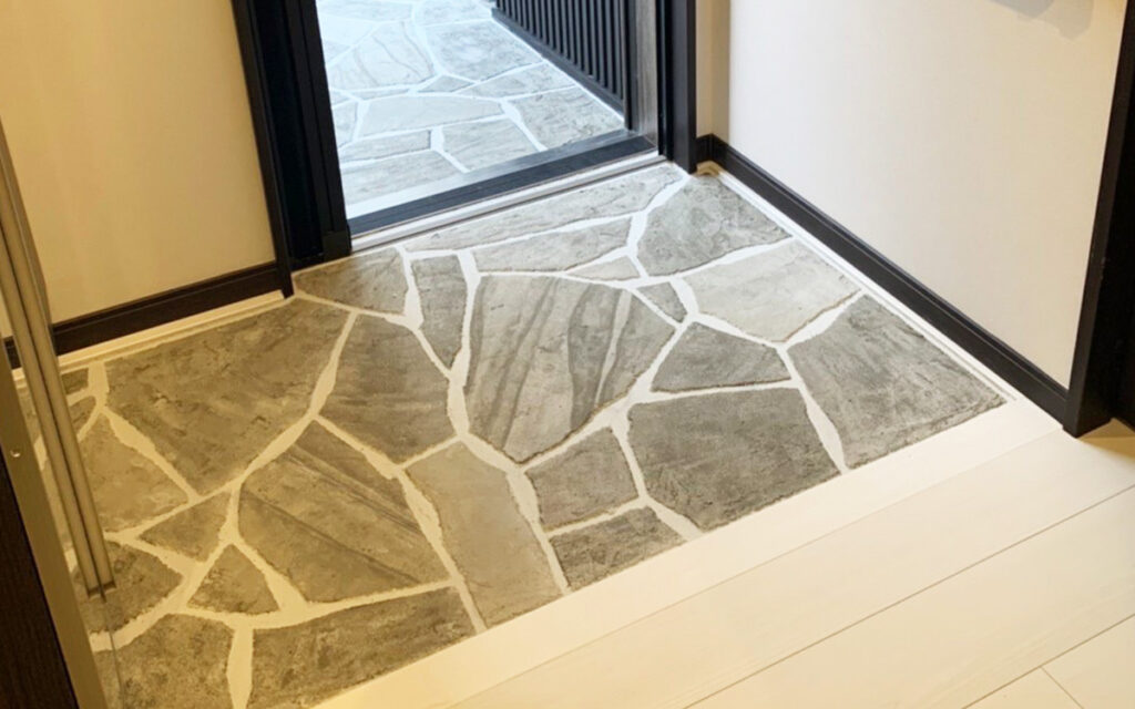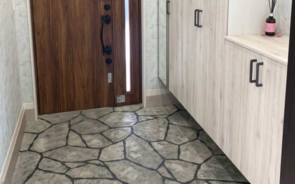 ローラーストーンの大きな魅力のひとつが、既存のコンクリートやタイルの上からそのまま施工できる点です。既存の床材を全て撤去する必要がないため、