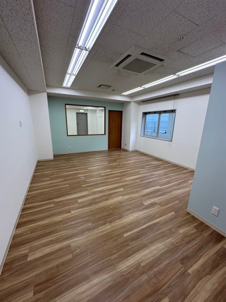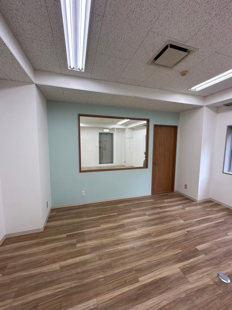 床と壁をセットでリフォームすることで、空間全体としての完成度が大きく上がります。床だけ、壁だけを変えるとアンバランスな印象になりがちですが、今回はトータルで色味と雰囲気を揃えることで、事務所全体が一体感のある明るい空間に仕上がりました。